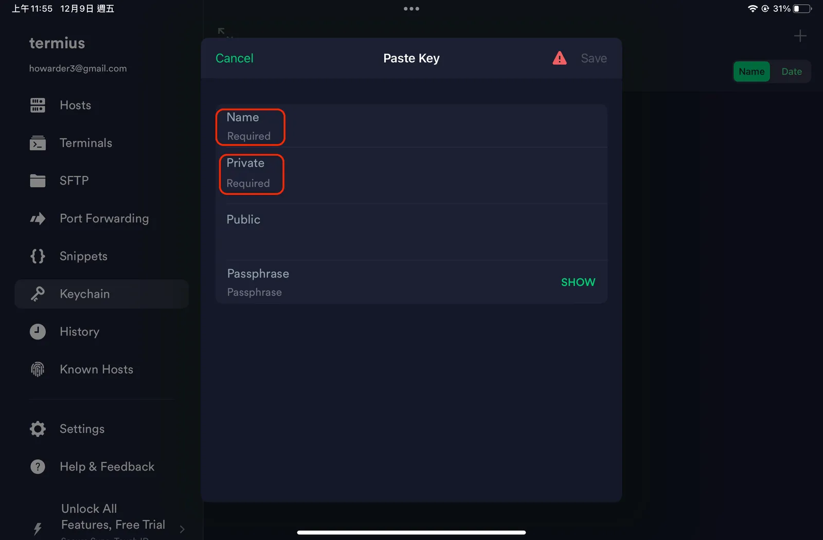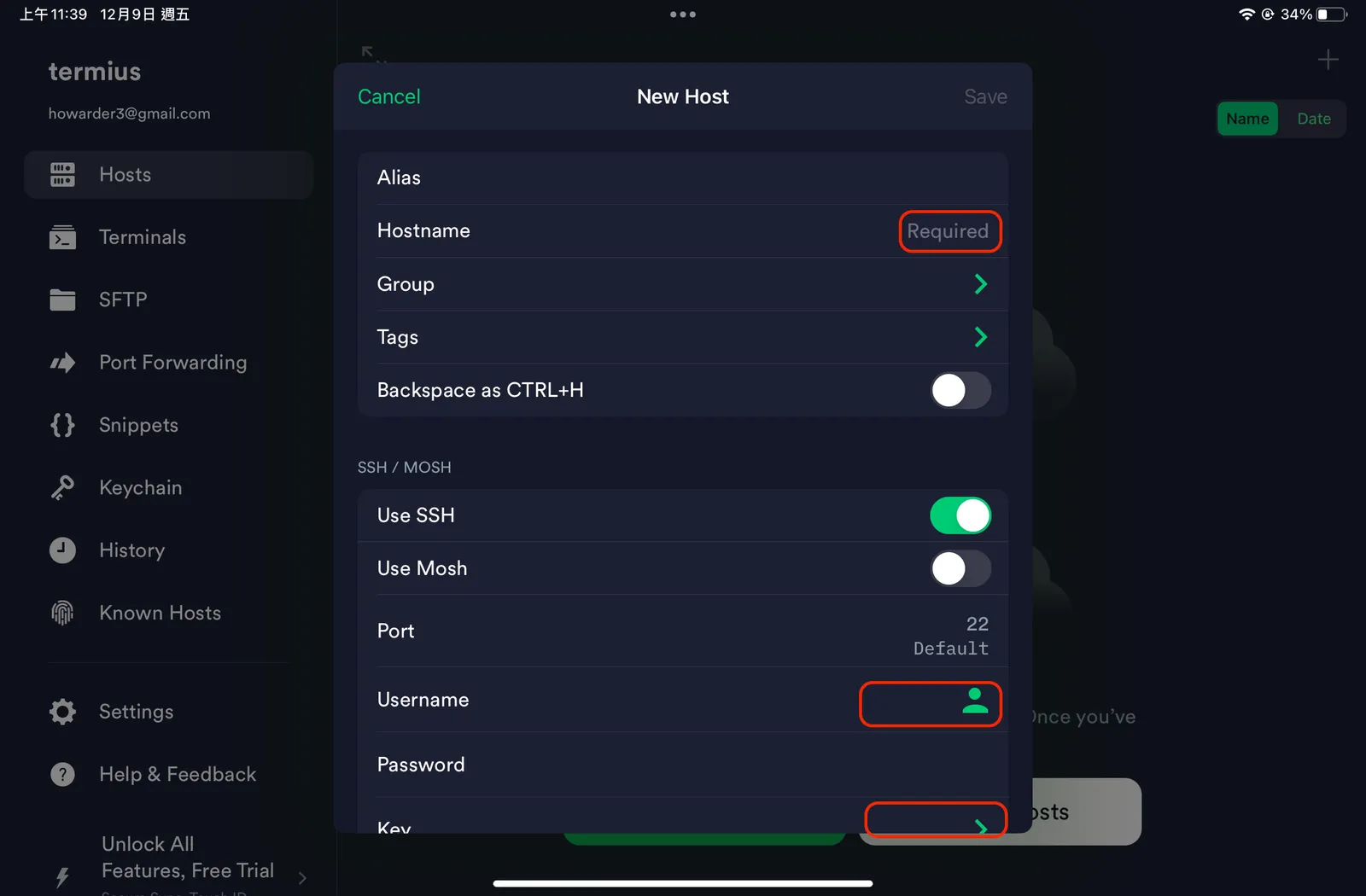 ipad Termius 設定