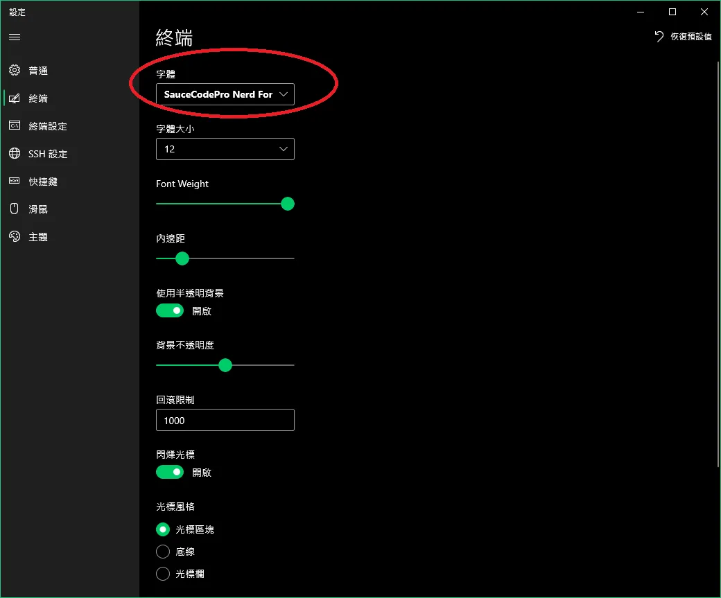 設定 fluent terminal 字體