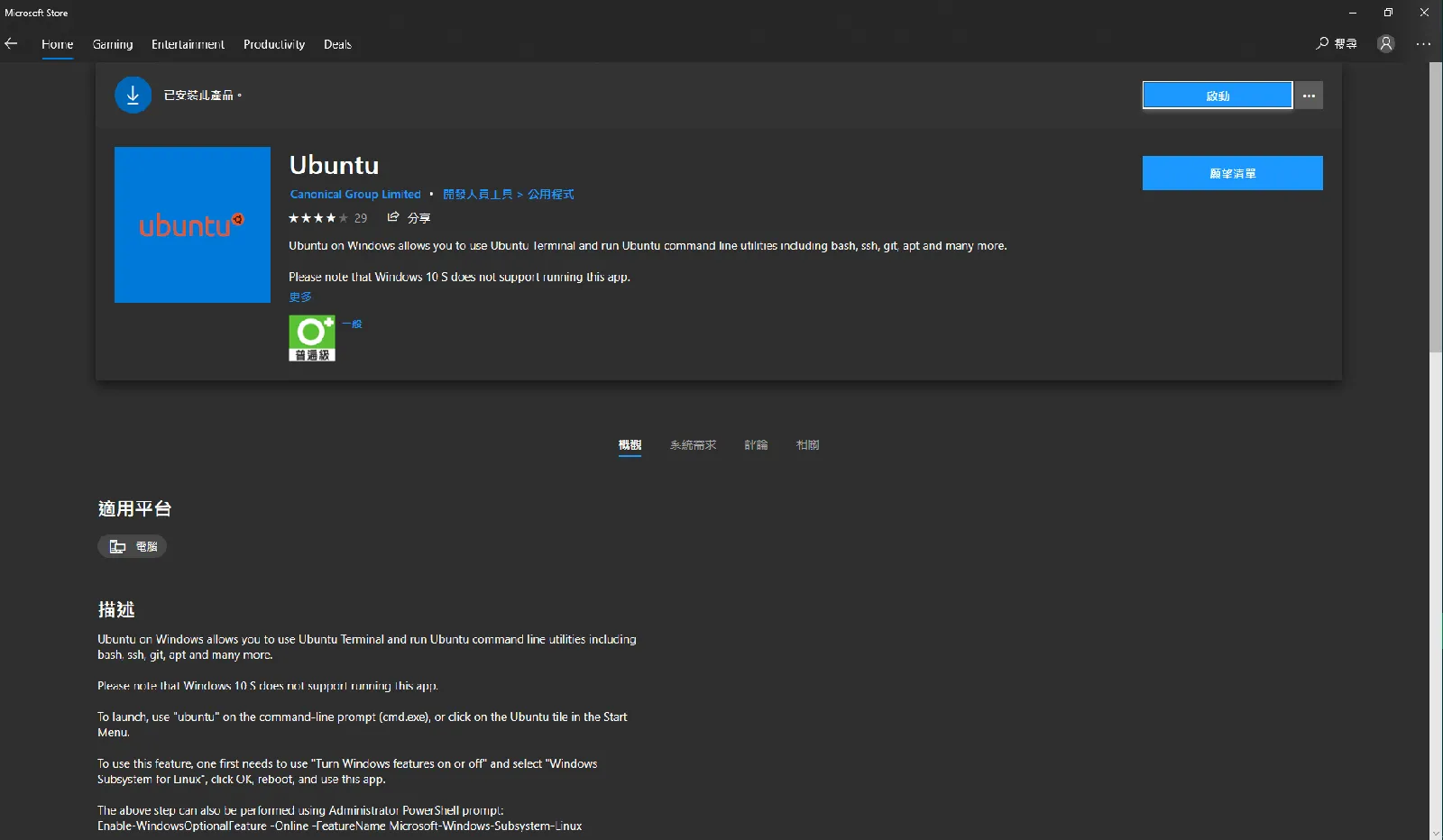 這邊我們可以去 Microsoft Store 找一個自己喜歡的 linux 環境,