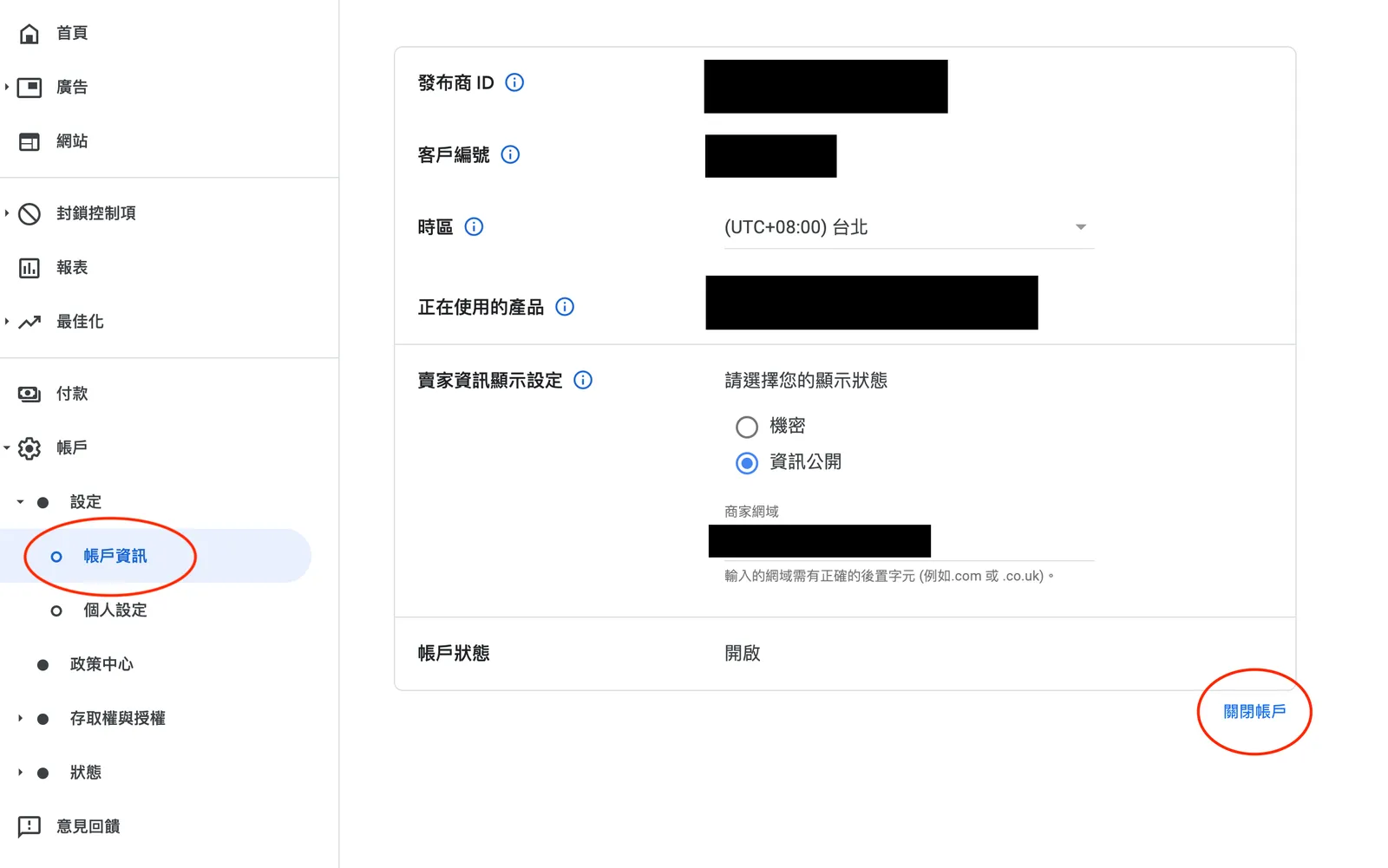 按下關閉帳戶!