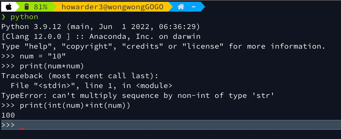 這時我們應該進行轉型, 例如 int(“10”),就可以當 10 計算了!