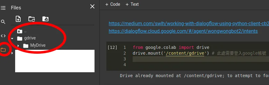 drive.mount('/content/gdrive') # 此處需要登入 google 帳號