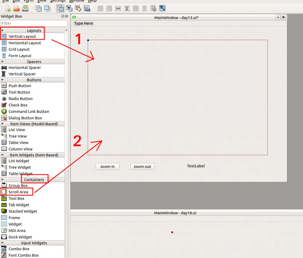 - 注意順序,先新增 Vertical Layout,疊加上 Scroll Area,再疊加上 Qlabel。