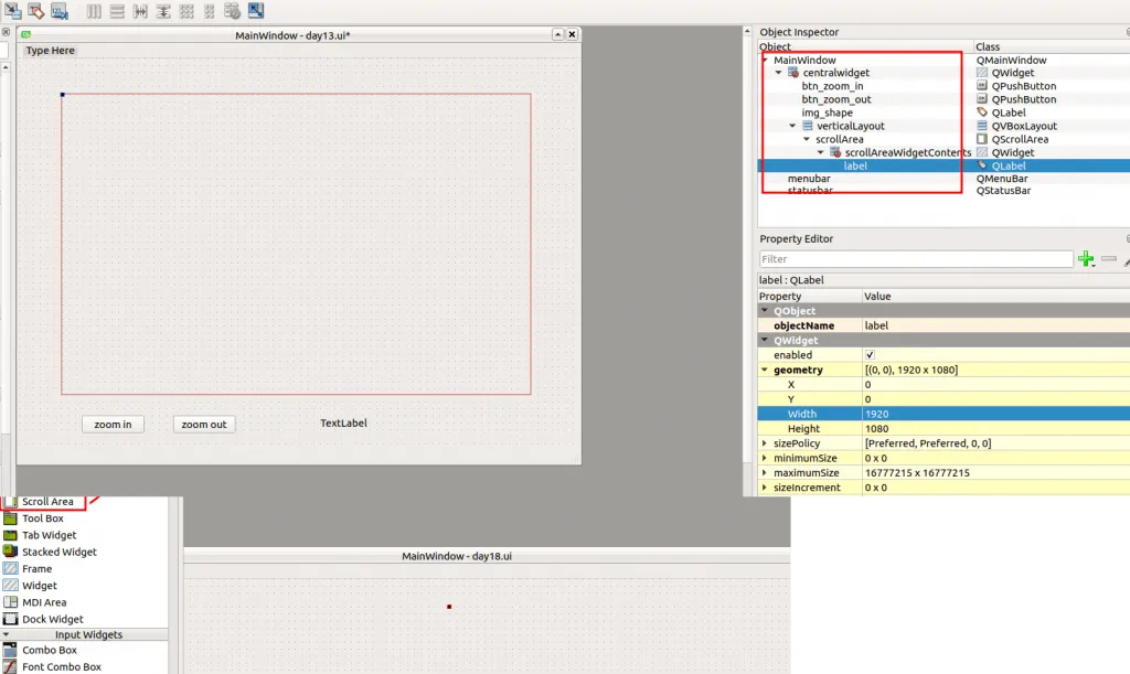 - 在此 Scroll Area (QscrollArea) 當中,再新增一個 Qlabel。作為圖片顯示使用。