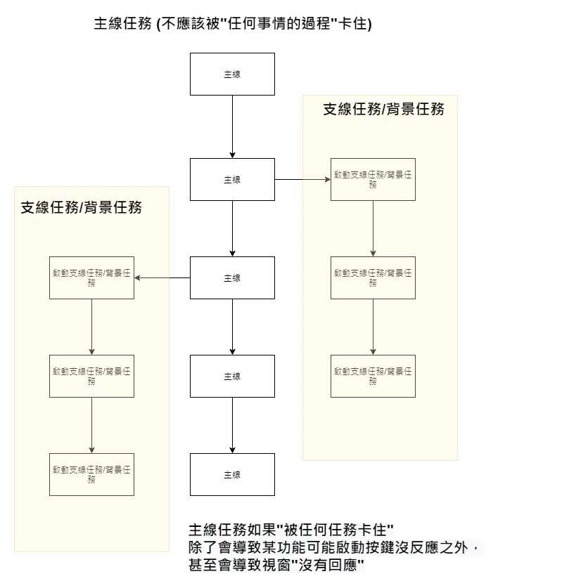 例如:時間就應該要背景更新,而不是我們主程式隨時切換去給時間+1