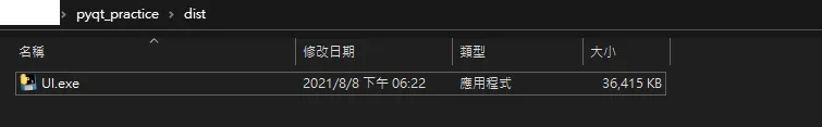 最後等待程式跑完後,我們去同一個資料夾底下的 dist,裡面會看到一份「UI.exe」 。