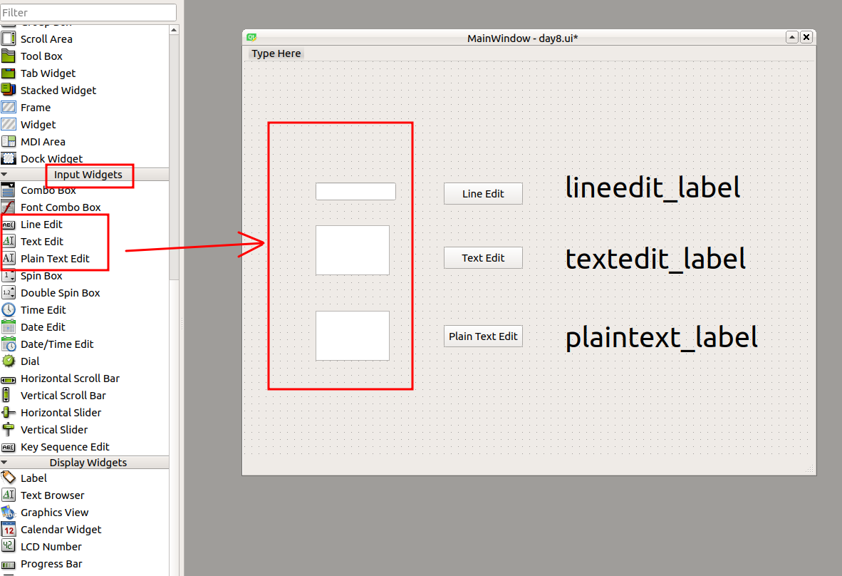 我們在 Input widgets 中找到 LineEdit, TextEdit, PlainTextEdit,