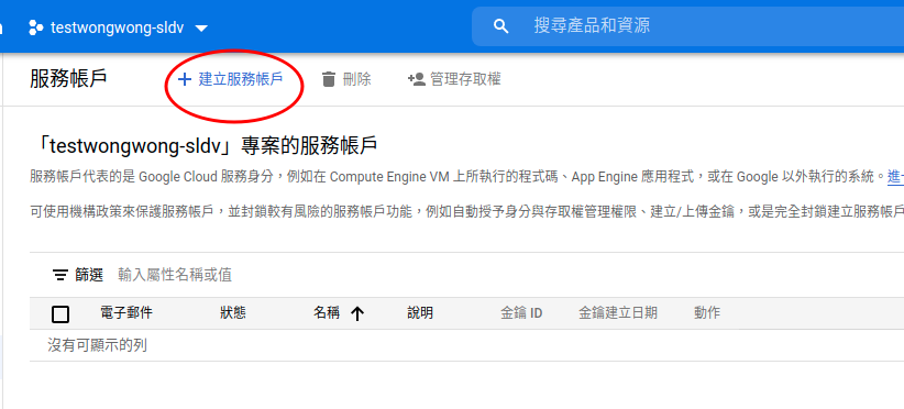 - 點選左側,「IAM 與管理」-> 「服務帳戶」